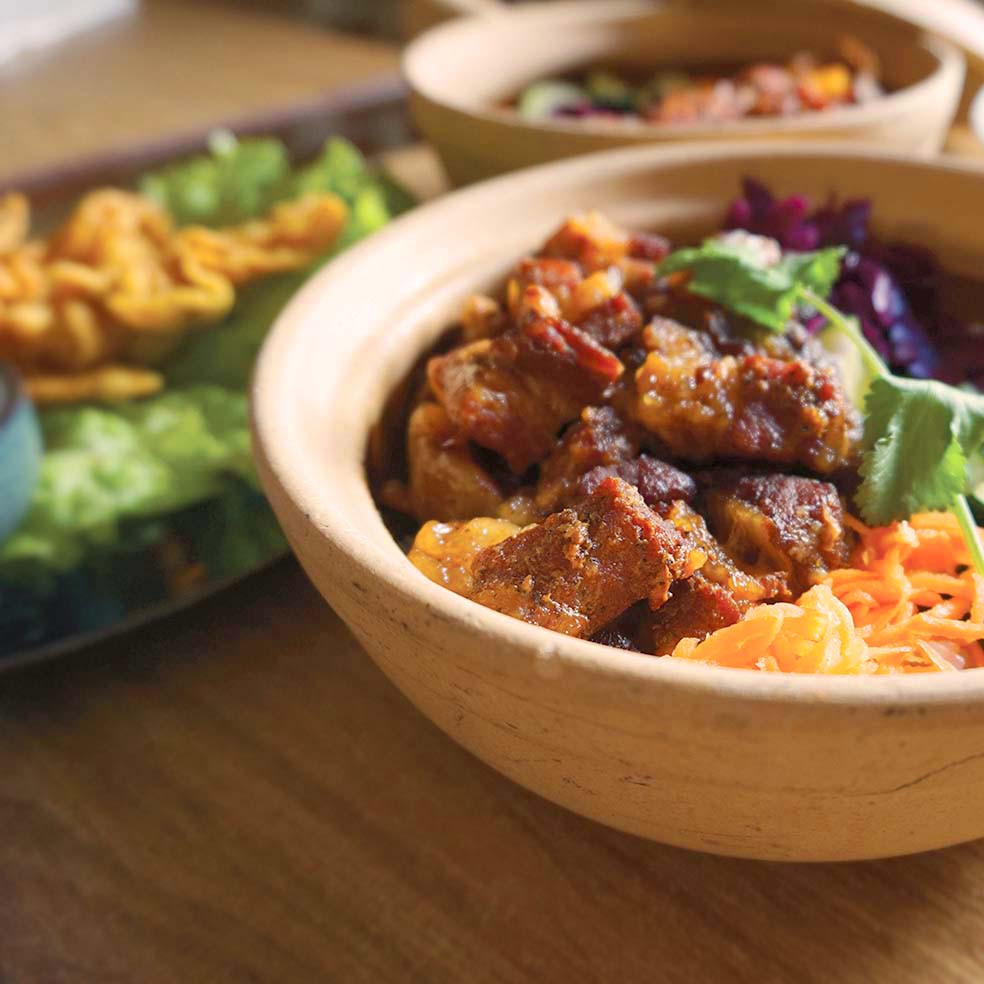 Nos équipes vous guident sur l’assemblage et l’assaisonnement (nuoc‑mam, piment, herbes fraîches) pour une restitution optimale. Chaque sac de repas à emporter inclut les essentiels afin de préserver équilibre et fraîcheur.